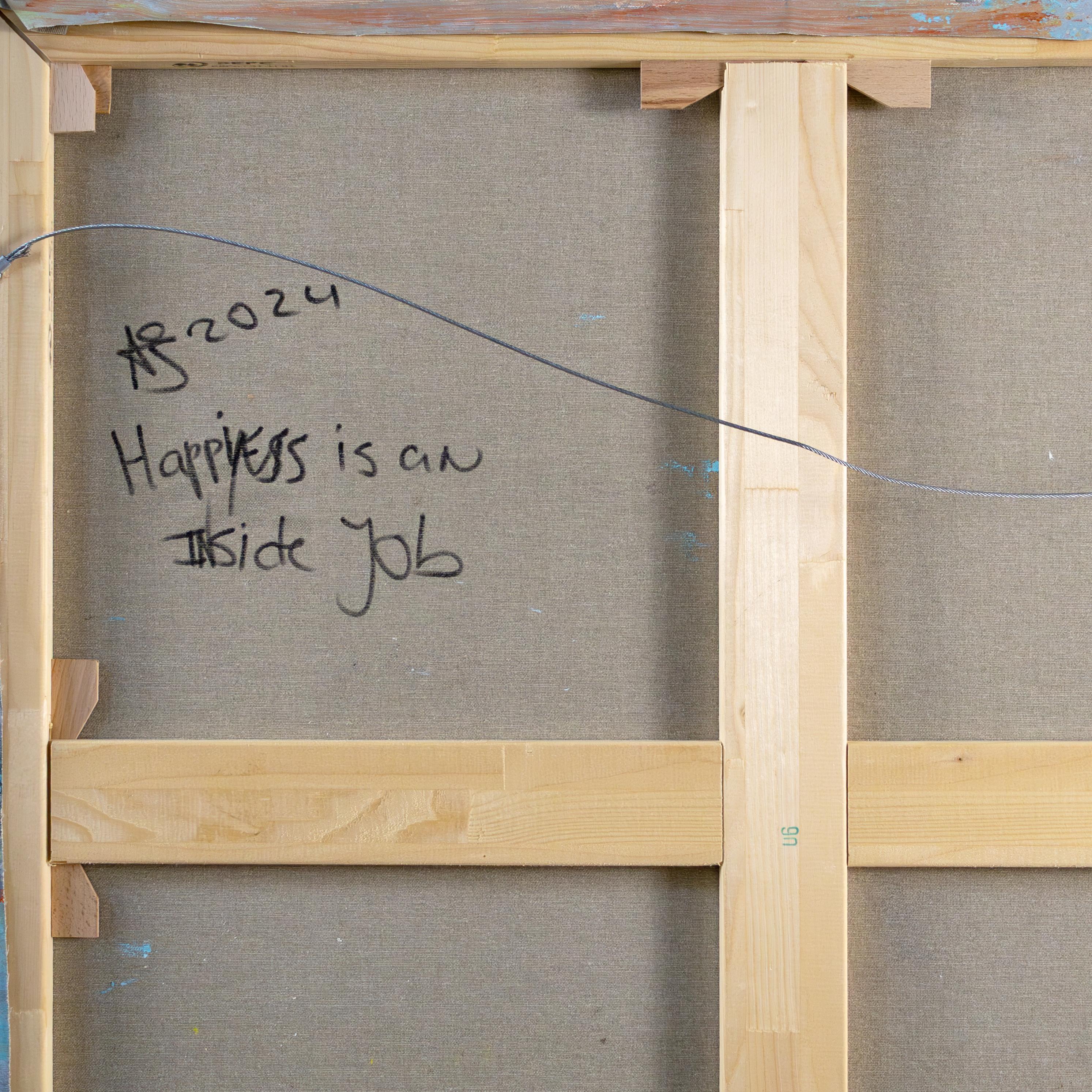 L’interprétation du titre Happiness is an inside job souligne la profondeur introspective de la série. Il décrit le bonheur non pas comme un événement extérieur, mais comme un processus actif, souvent laborieux, de stratification et de mise à nu intérieure. Tout comme Snijder applique, recouvre et gratte à nouveau les couleurs, la toile reflète le « travail intérieur » nécessaire pour atteindre un noyau de satisfaction. La texture physique devient ainsi une métaphore de la psyché humaine : le vrai bonheur se trouve sous la surface et doit être rendu visible par la confrontation consciente avec ses propres couches émotionnelles – couche après couche.