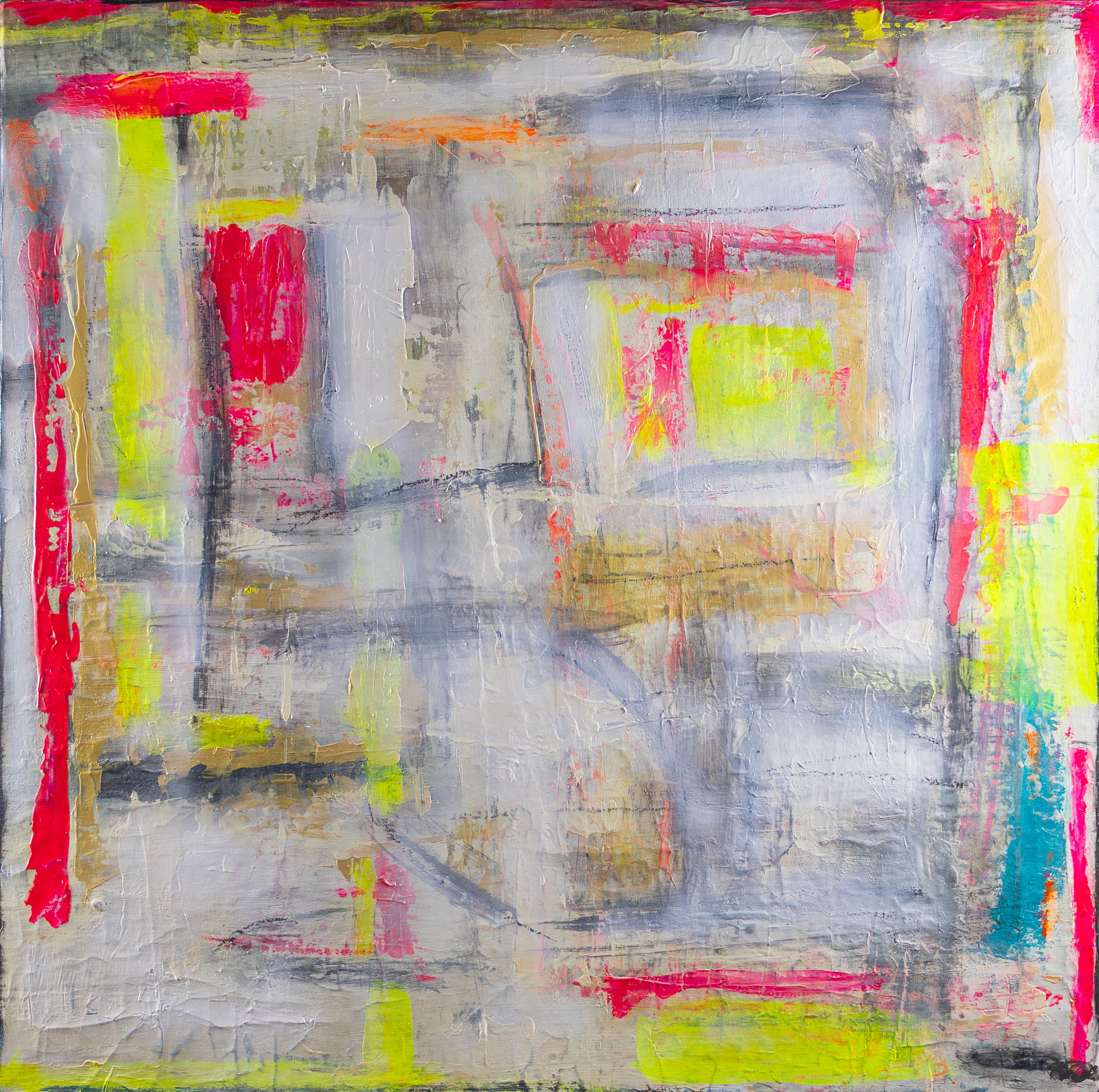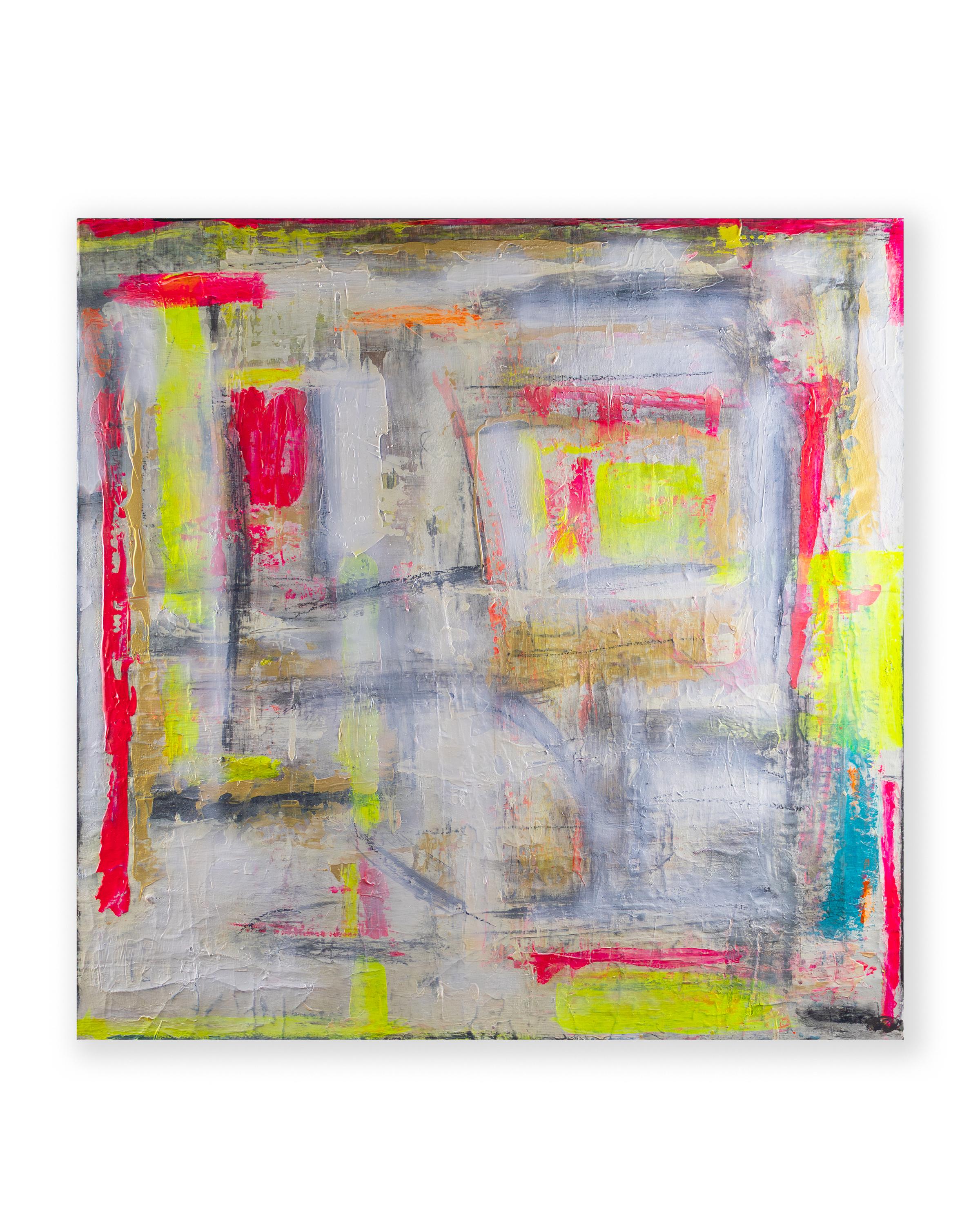 L’œuvre captive par un équilibre tendu entre des explosions de couleurs extatiques et des repeints apaisants. Des accents néon lumineux en rose, jaune et turquoise brillent comme des impulsions énergétiques à travers de généreuses couches de blanc et de gris clair. Un vernis final conserve cette intensité si parfaitement que l’œuvre semble en permanence « fraîche ».