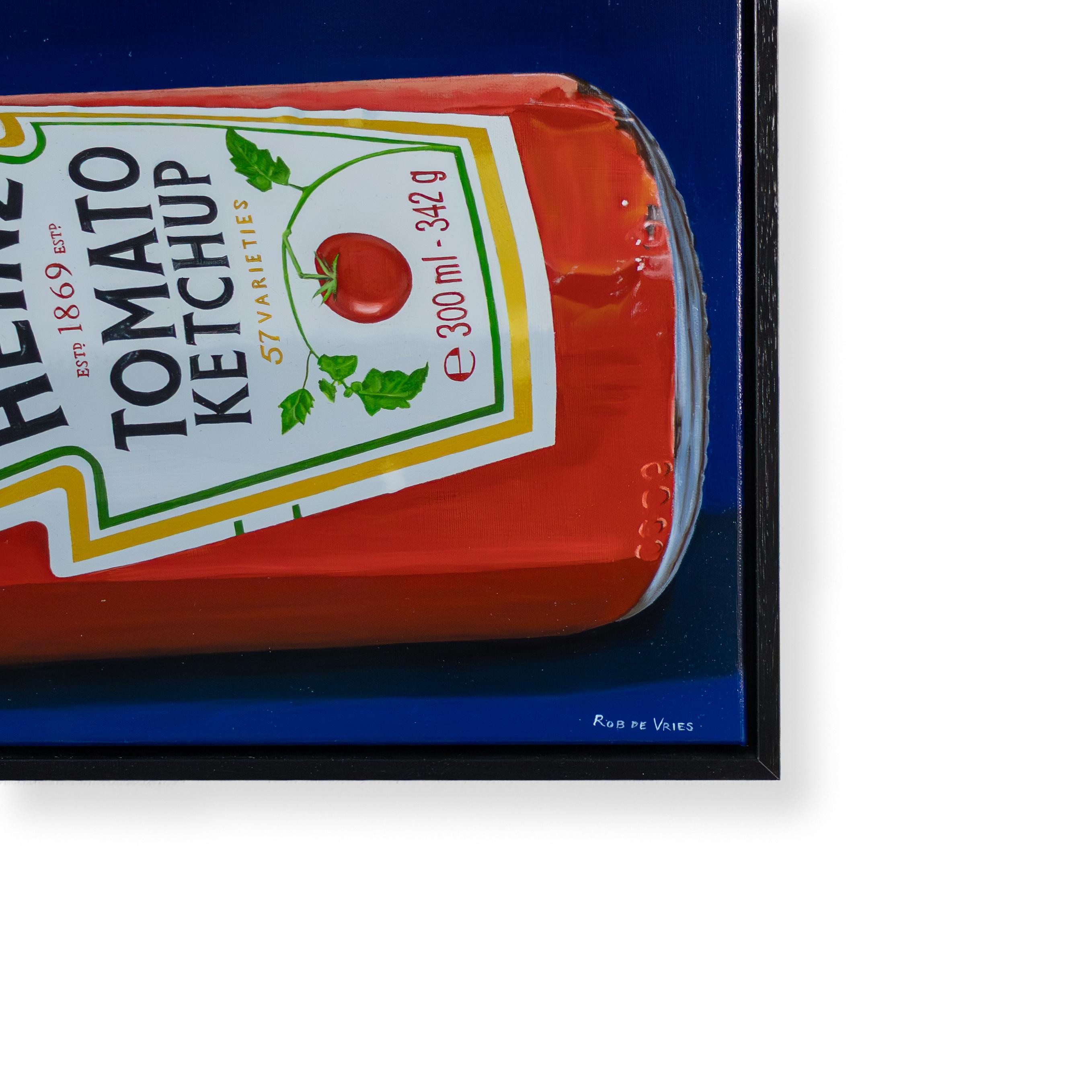 Dans la tradition du photoréalisme, cette œuvre s’inscrit par sa précision technique dans un courant qui documente le quotidien avec une objectivité infaillible. Alors que des artistes comme Ralph Goings ont perfectionné l’esthétique froide du verre et des reflets, Rob de Vries utilise ici cette technique pour disséquer la réalité matérielle des produits industriels. Le choix du sujet – une bouteille de ketchup – jette également un pont direct avec le Pop Art et rappelle les travaux iconiques d’Andy Warhol. Cependant, grâce à l’exécution photoréaliste, le produit de consommation de masse est extrait de son univers purement graphique pour acquérir une présence physique tangible, presque monumentale.