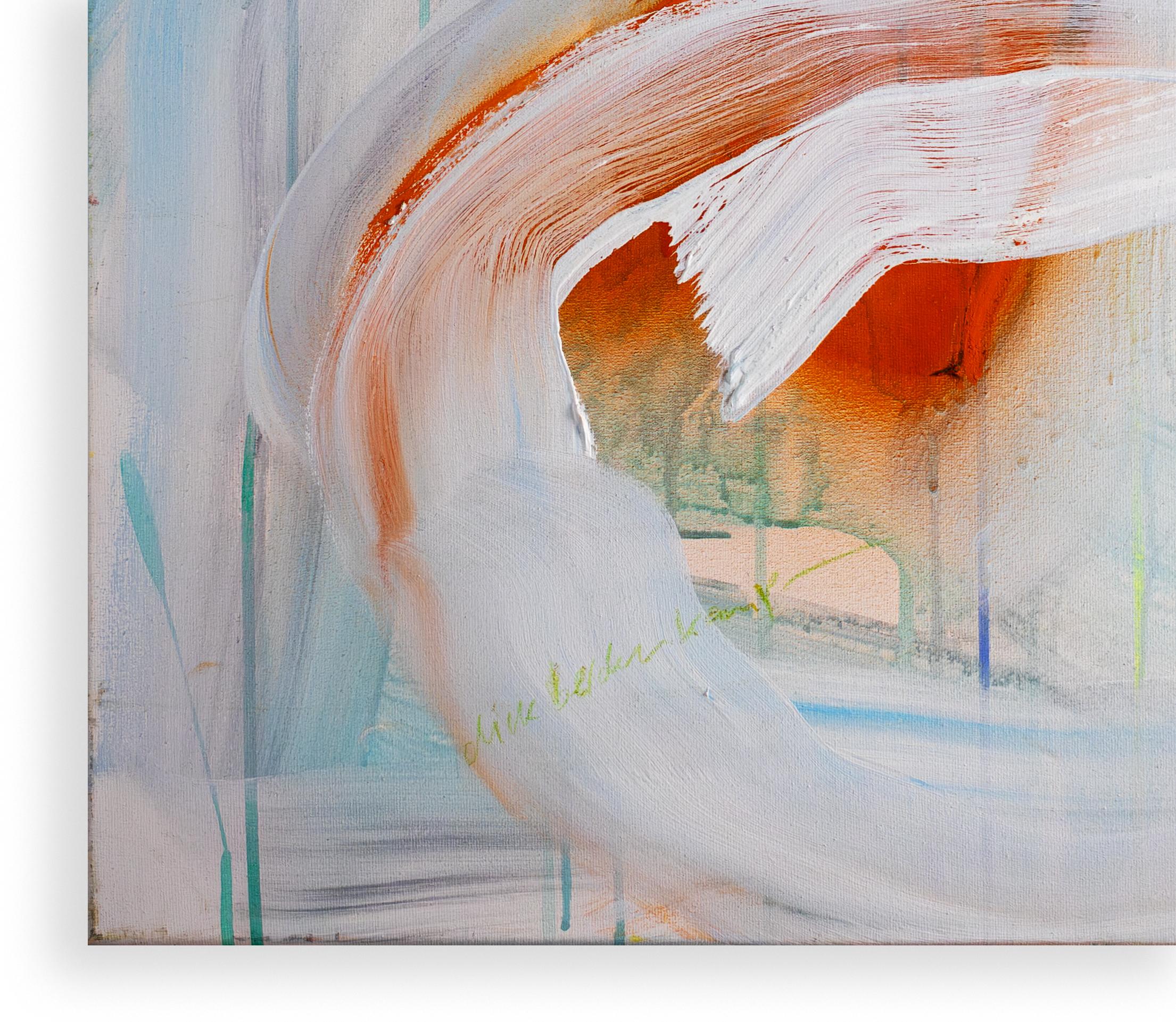 De neutrale, lichte achtergrond werkt hier niet als een leegte, maar als de noodzakelijke vrije ruimte voor de ontplooiing van deze tedere dynamiek. Het resultaat is een werk dat de toeschouwer raakt door zijn openheid en onopdringerigheid. Composition I (I guess I just feel like) wordt zo een visuele reflectie op de fragiliteit en tegelijkertijd de lichtkracht van menselijke gewaarwordingen, die voorbij de woorden bestaan in een staat van puur, kleurrijk zijn.