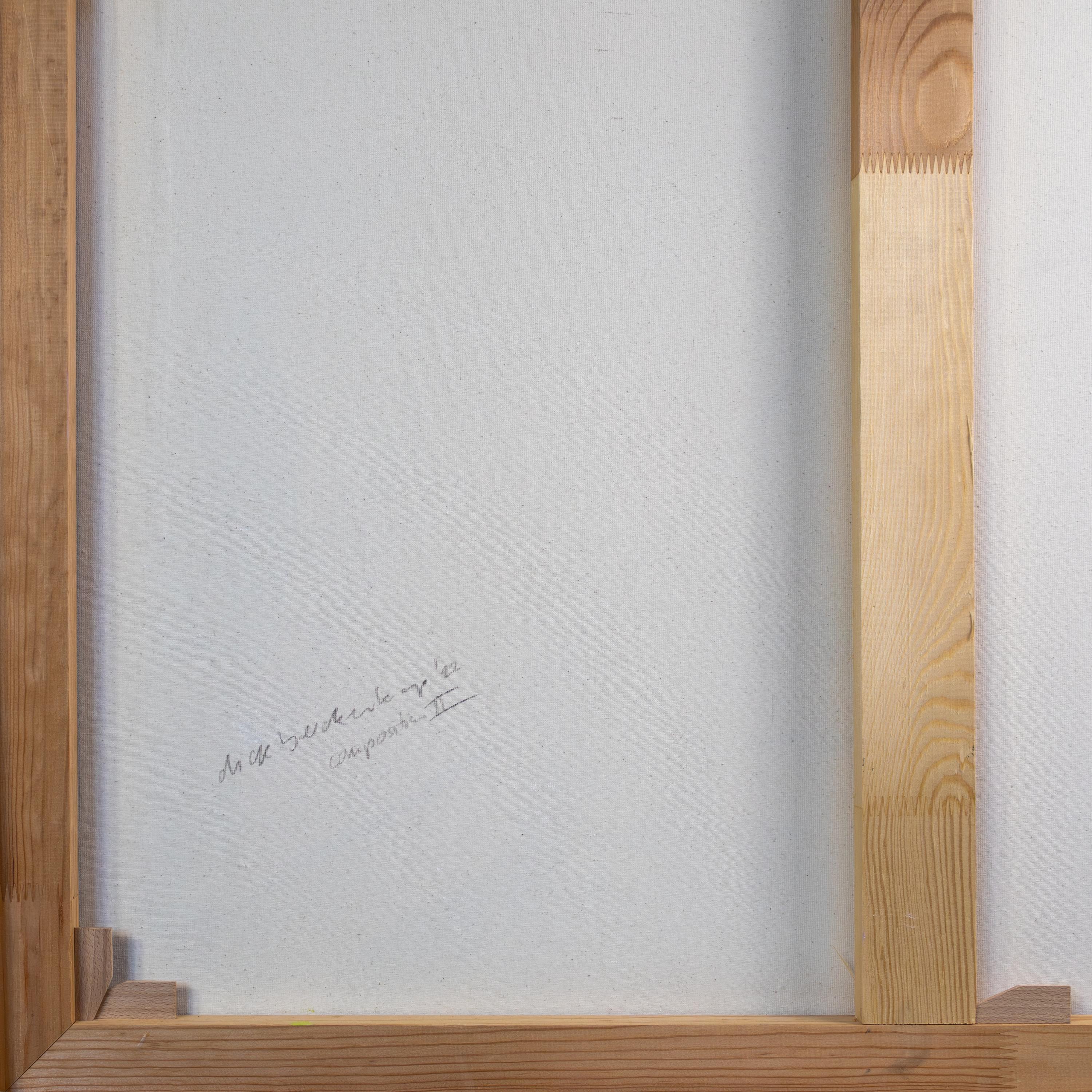 Dick Berckenkamp’s Composition II (I hear something different) from the Composition series opens a synesthetic dialogue between visual abstraction and acoustic perception. The work seems to capture the moment in which an external or internal sound triggers a psychological resonance. Through the fine, searching contour lines, the silhouette of a woman’s head can be sensed in the upper area, remaining in a gesture of listening or deep absorption.