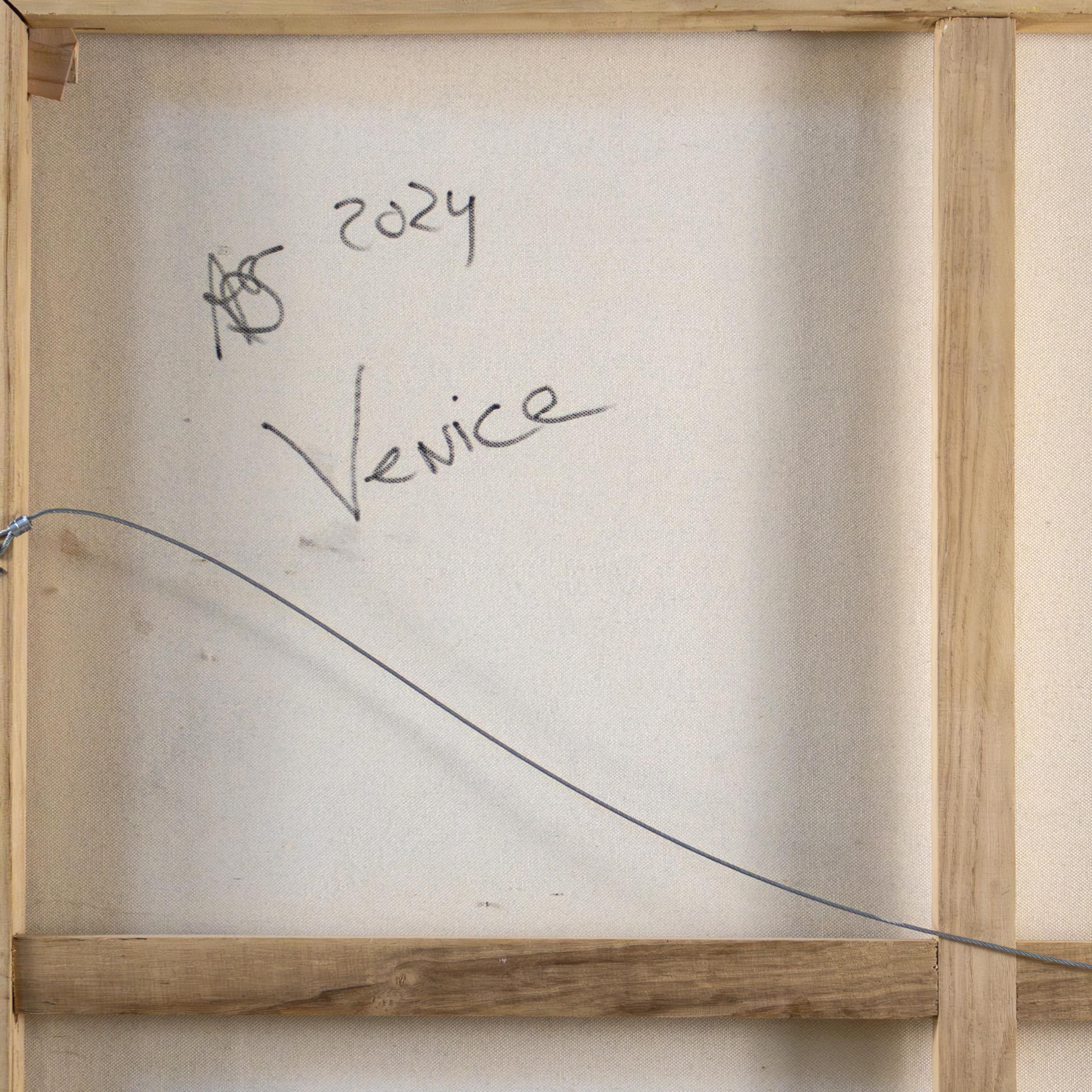 In the work Venice, Anna Snijder creates a visual meditation on impermanence. Stylistically, the piece combines the atmospheric luminosity of William Turner’s late works with the modern squeegee technique pioneered by Gerhard Richter. Snijder uses this tool to architecturally build up impasto surfaces in ochre and sand, only to veil them again through mechanical abrasion, creating the effect of a weathered, history-steeped facade.